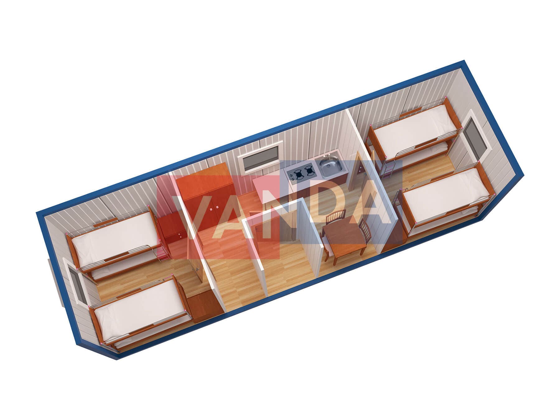 Проект общежития из блок контейнеров 9x21,6 Панели МДФ